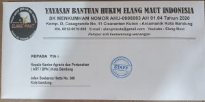 Elangmautonline.com. LBH Elang Maut yang diberi kuasa oleh ahli waris DJAJADI KARTA Bin ARSADIDJAJA menyurati Kepala BPN Kota Bandung, mempertanyakan dasar penerbitan Sertifikat HGB atas lahan yang saat ini berdiri bangunan Apartemen Grand Asia Afrika Bandung.