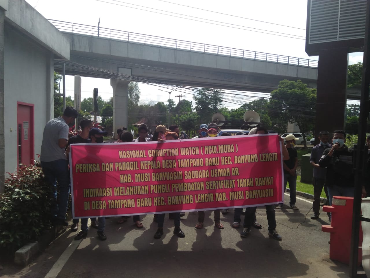 Elang Maut Online, Palembang – Nasional Coruption Watch (NCW.MUBA), Periksa dan panggil oknum kepala desa di kecamatan Banyung Lencir kabupaten Musi Banyuasin saudara U. AR. Indikasi melakukan pungli pembuatan sertifikat tanah rakyat di wilayah kecamatan Banyung Lencir Kabupaten Musi Banyuasin, yang beraksi di di Kejati Jalan Bastari Palembang, Jumat (25/3/2022).