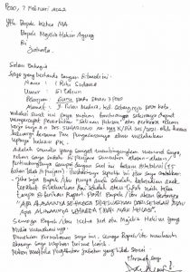 Melalui surat ini saya mohon bantuannya untuk segera menerbitkan salinan putusan perkara guru saya Bapak Drs. Suhariono, dengan nomor perkara: 1999 K.PID.SUS/2021, karena akan melakukan upaya hukum lanjutan Peninjauan Kembali (PK).